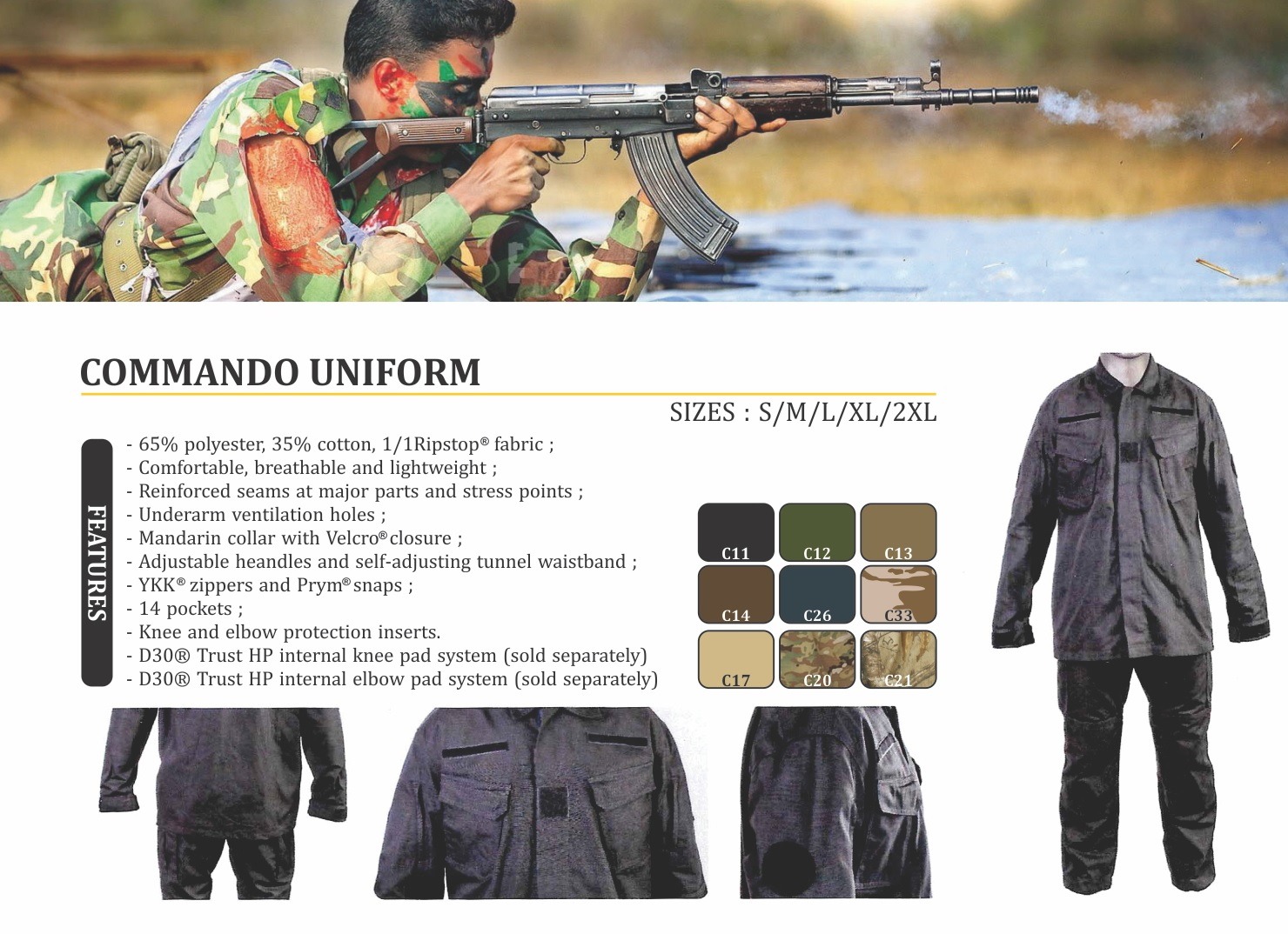 Using durable material and Ripstop fabric that ensure maximum mobility, our resistant military Uniforms are designed to be used abusively. They are loaded up with pockets that can easily hold anything you need during missions and operations. Offering an authentic and elegant look, these military uniforms and coveralls design for men, but can be worm also by women.